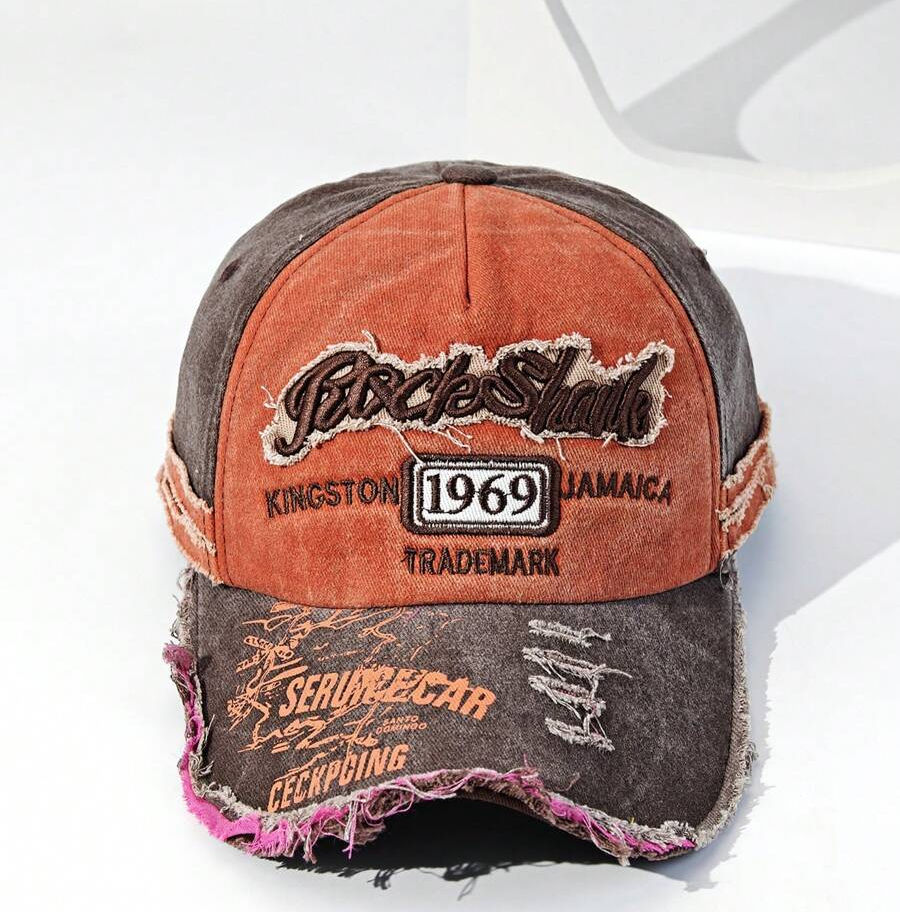 1pc Vintage Distressed Embroidered Letter Baseball Cap